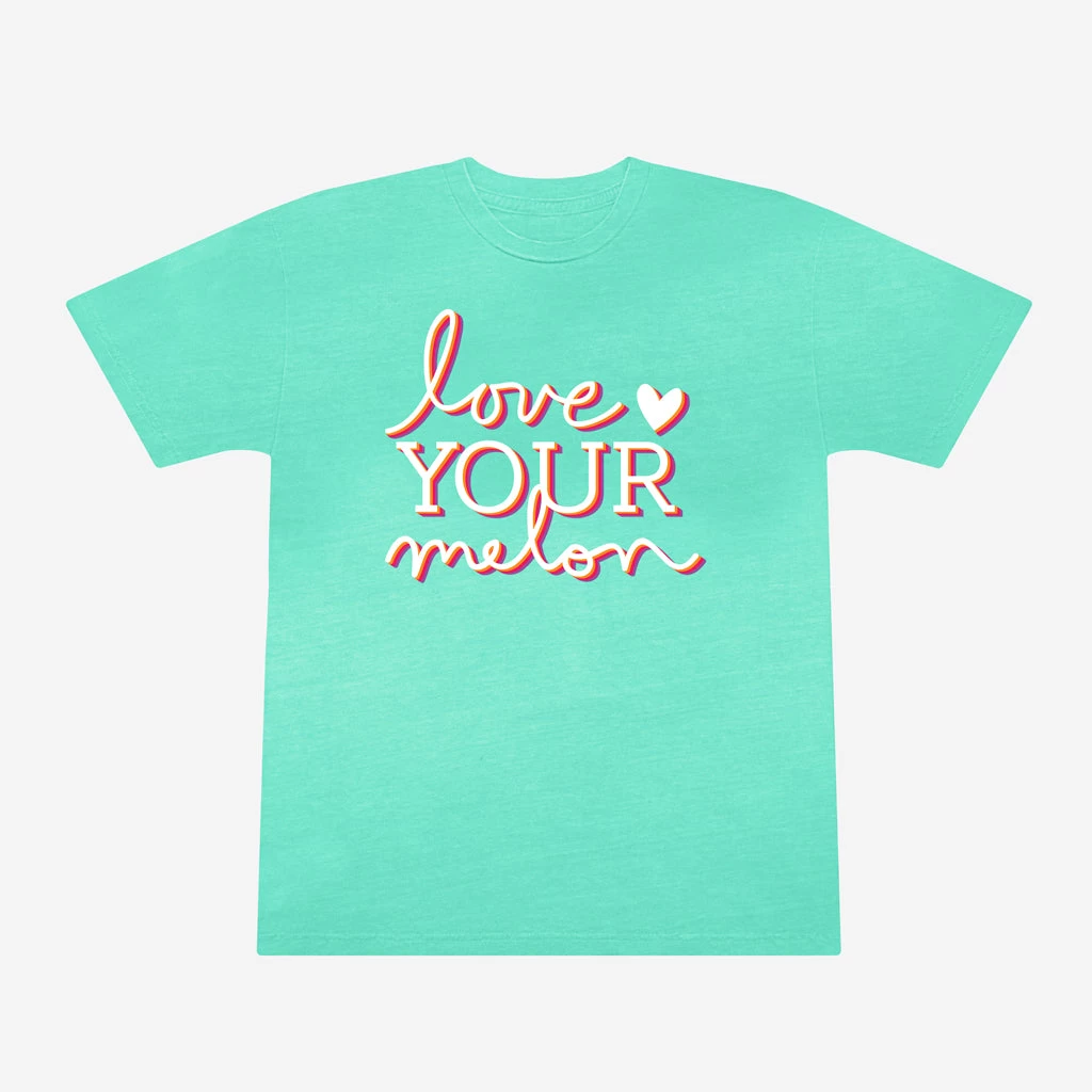 This shirt is made from 100% cotton and silicone washed for a super soft, relaxed fit. This shirt features the dual color Love Your Melon stacked logo on the front and a silicone branded tag on the back for easy hanging