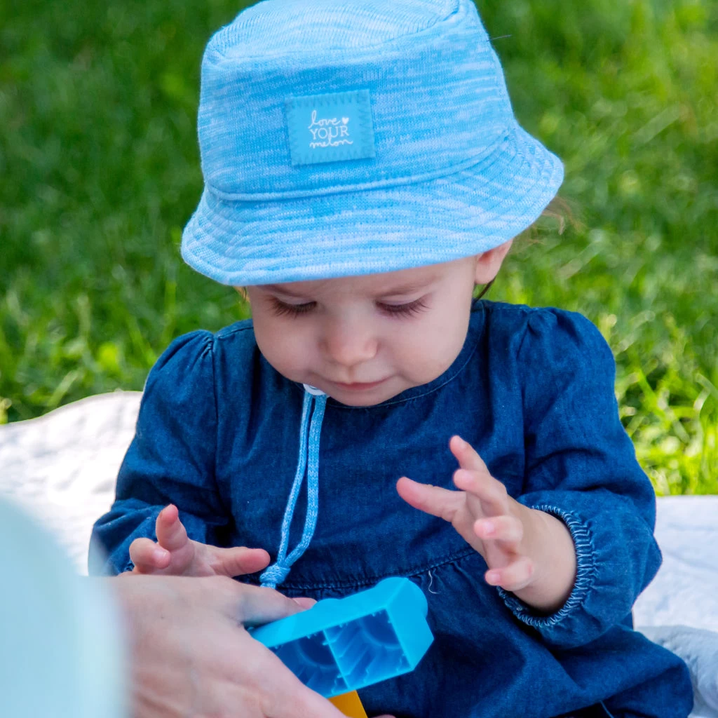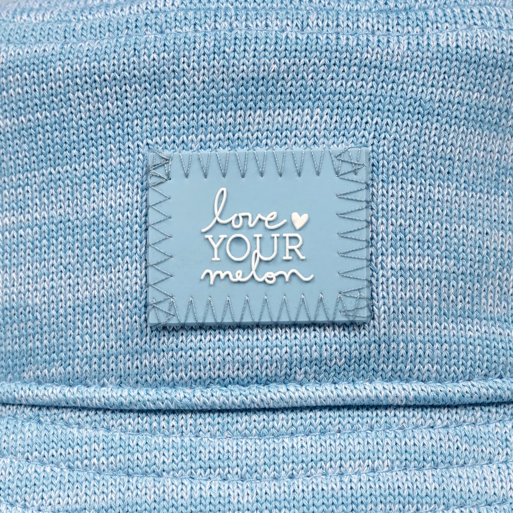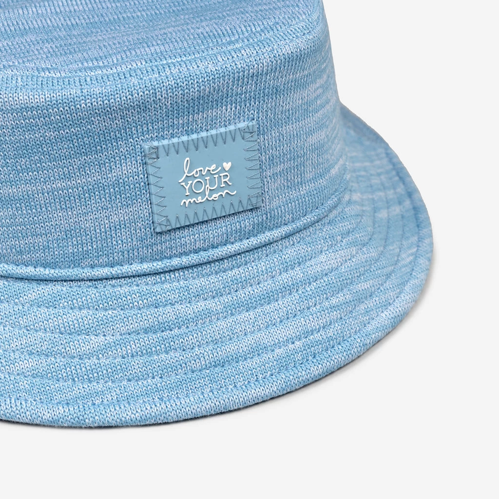 Made with ultra-soft, FitKnitâ„¢ Technology, The Hero Bucket Hat contours to your head for a fit you need to feel to believe. The Baby Blue Speckled Hero bucket hat features a blue silicone patch embossed with the Love Your Melon logo.