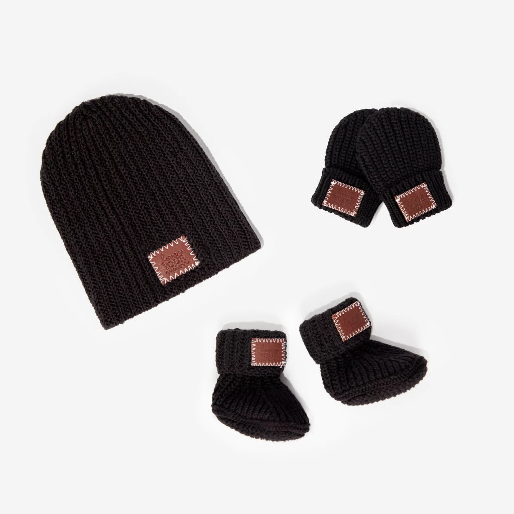 The Baby’s First Beanie Bundle includes a LoveKnit™ Baby Beanie, Baby Mittens, and Baby Booties. It’s the perfect present for autumn and winter babies! Available in Black, Black Speckled, Burgundy, and White Speckled.