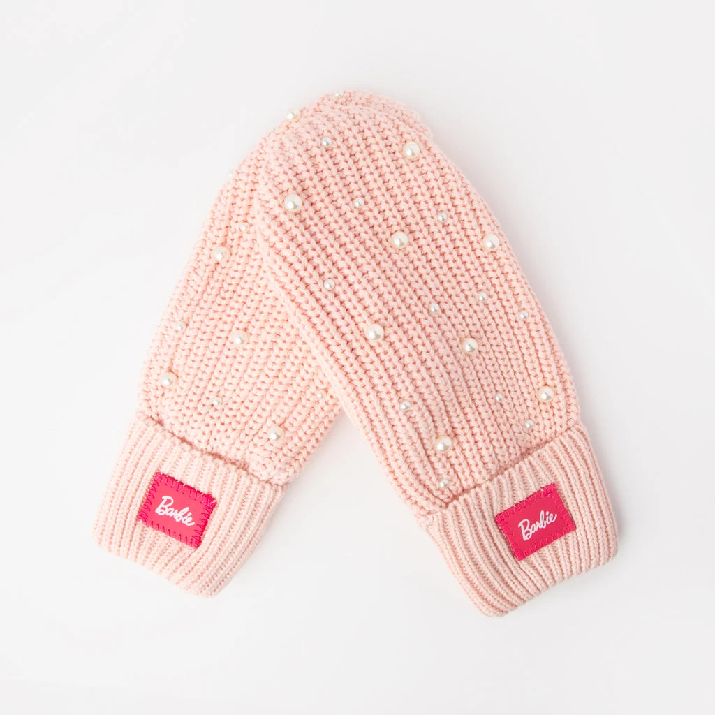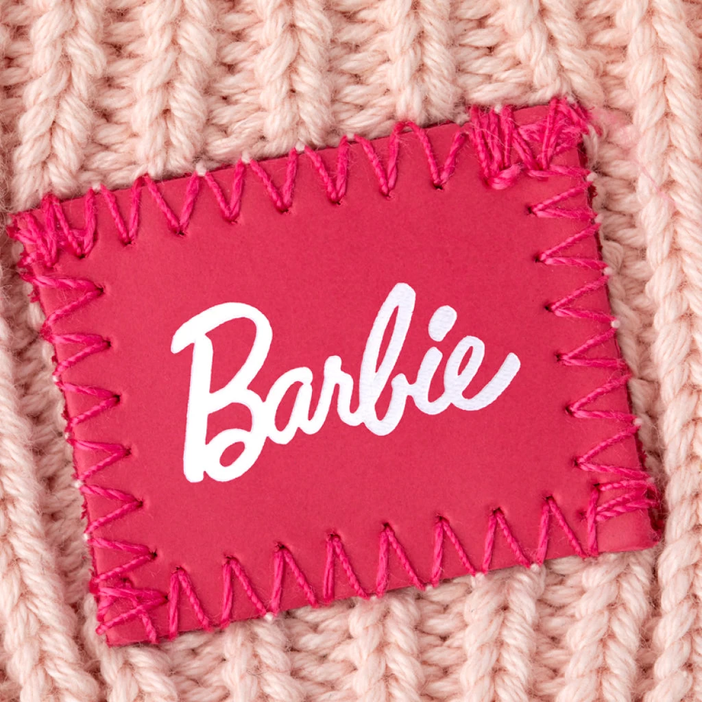 Keep warm this season with these pearlized Blush Barbie™ Mittens! These adorable pink knit mittens feature mini leather Barbie™ patches and a Love Your Melon loop tag underneath.