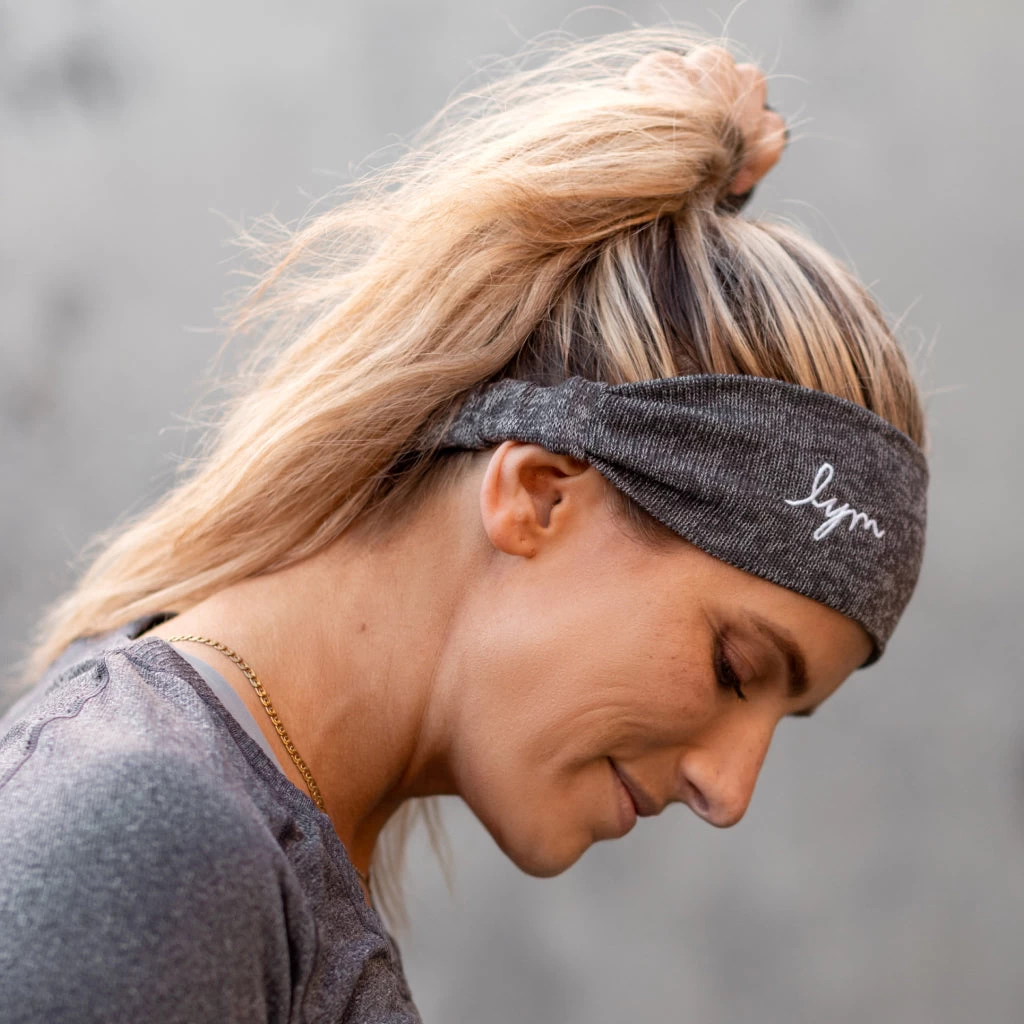 Hero Headband: The Gray Speckled Hero Headband features a cursive Love Your Melon logo embroidered in white.Â