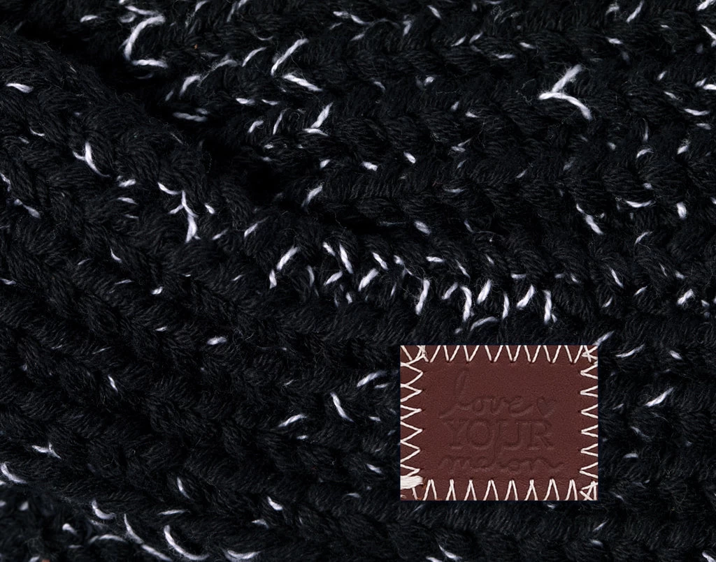Prepare to be cozy! This knit headband in speckled black and white provides extra warmth with a stylish twist. A miniature version of our signature maple leather patch is debossed with the Love Your Melon logo, adding a subtle accent on the wearer’s left.