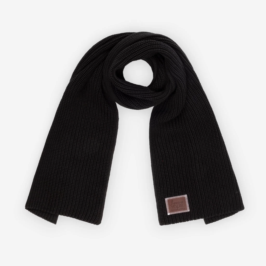 This long black scarf features a red maple patch debossed with the Love Your Melon logo on the bottom left. This scarf is the perfect accessory to match a cozy beanie!