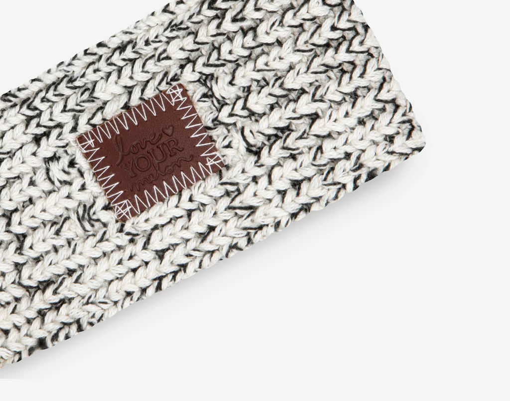 This black speckled baby knit headband features an infant red maple leather patch debossed with the Love Your Melon logo on the front of the headband. This knit headband is cozy and perfect for the colder seasons!