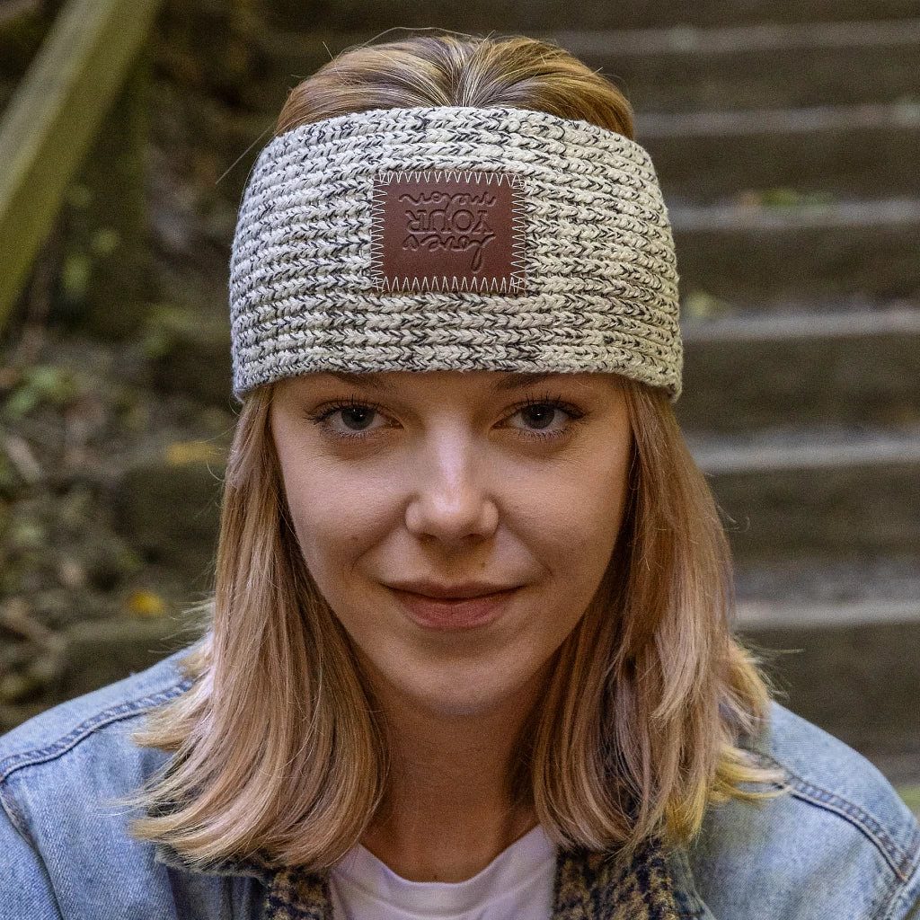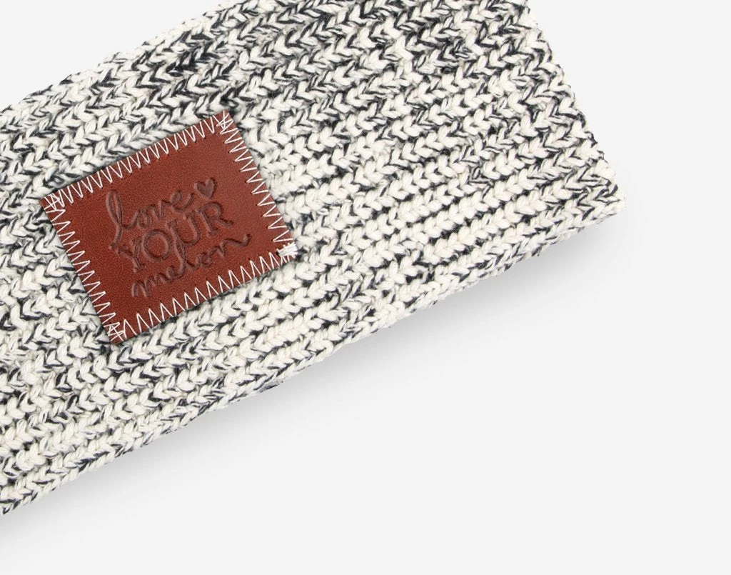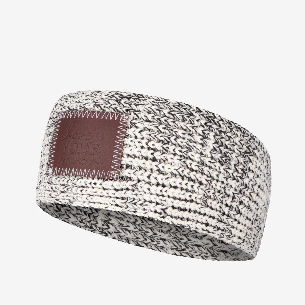 This stylish black and white speckled knit winter headband features a red maple leather patch debossed with the Love Your Melon logo on the front of the headband. This knit winter headband is cozy and perfect for the winter!