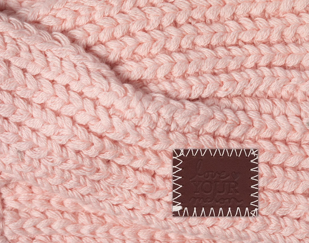 Prepare to be cozy! This knit headband in soft blush pink provides extra warmth with a stylish twist. A miniature version of our signature maple leather patch is debossed with the Love Your Melon logo, adding a subtle accent on the wearer’s left.