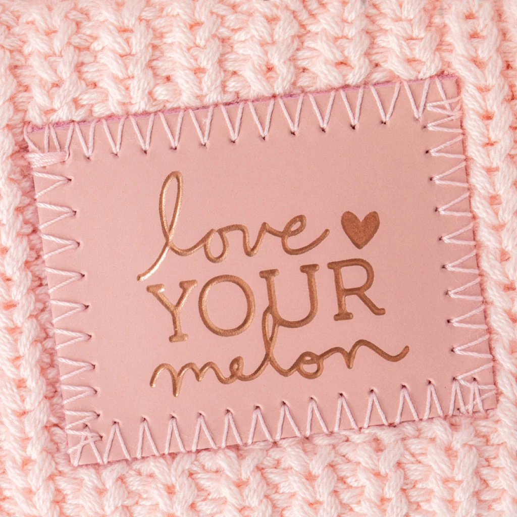 This blush rose foil slouch beanie features a satin lining that is cool to the touch and naturally benefits your hair, leaving you frizz-free all winter! It includes a blush leather patch, debossed with the Love Your Melon logo in rose gold foil.