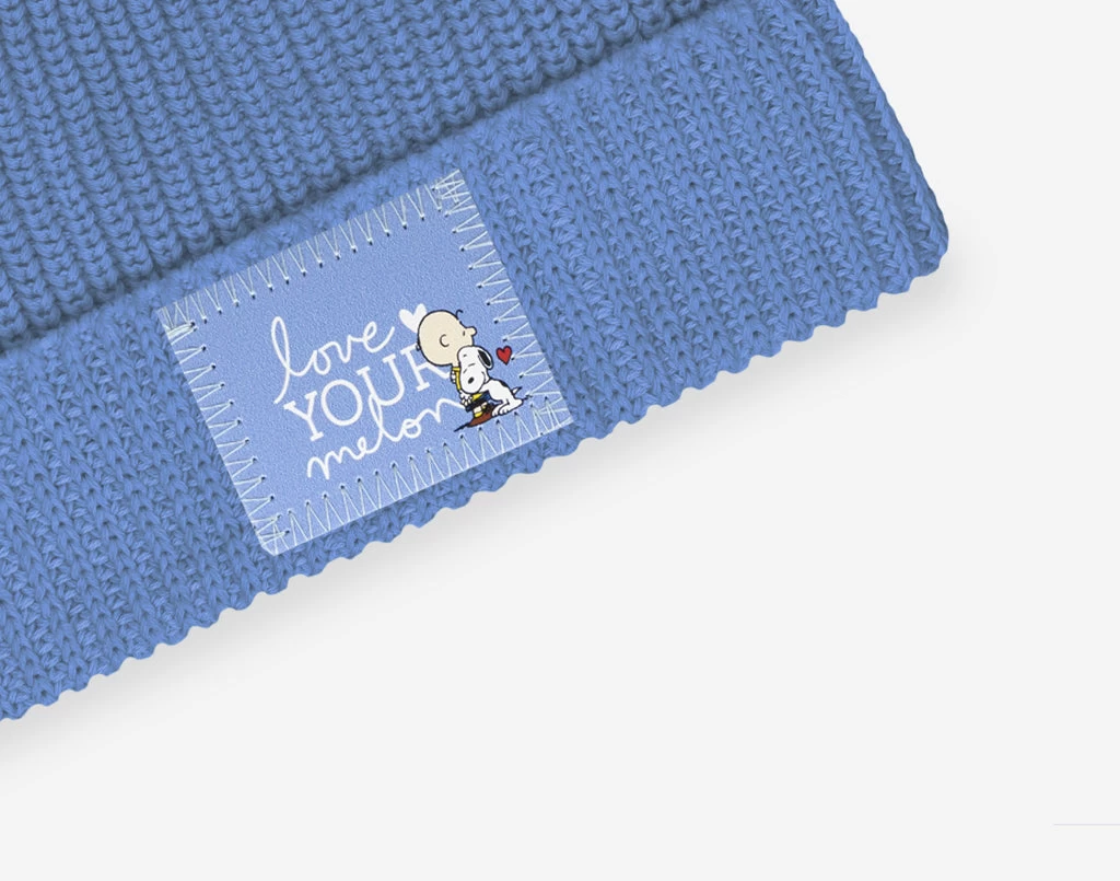 Take a trip down memory lane with the much-loved Peanuts comic strip in this soft blue kids lightweight pom beanie! This cool kids lightweight cuffed beanie features Snoopy and Charlie Brown hugging in front of the Love Your Melon logo printed on a genuine leather patch and has a detachable soft blue faux fur pom. These beanies are perfect for all-season wear and fit more snug.