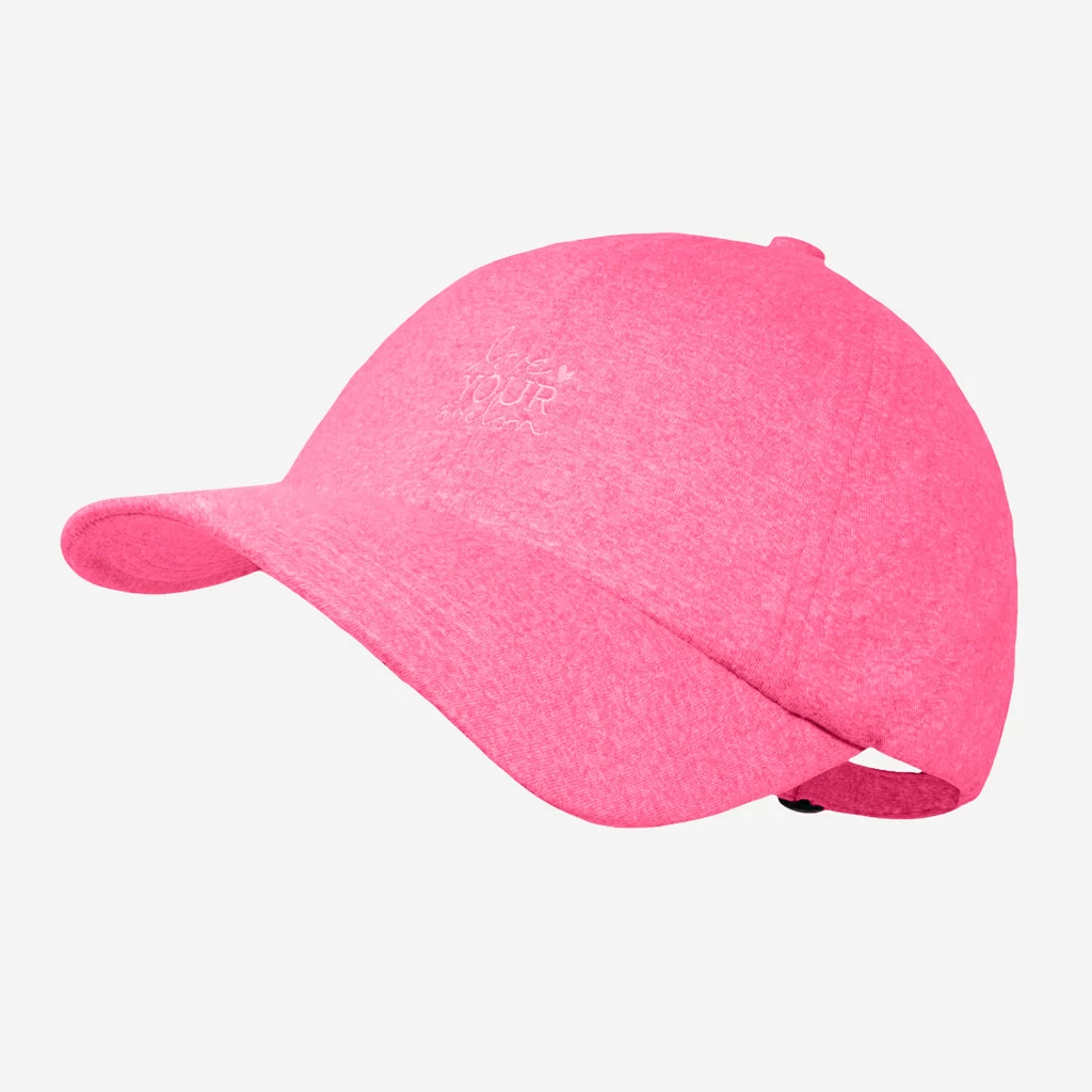 This coral athletic cap features the Love Your Melon stacked monochrome logo embroidered on the front, an adjustable slider strap at the back, and a rubber branded tag on the back strap. This unstructured cap is perfect for a casual day or your hardest workout!