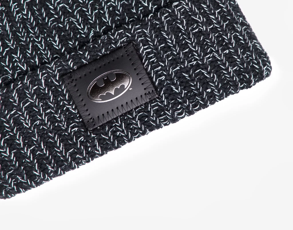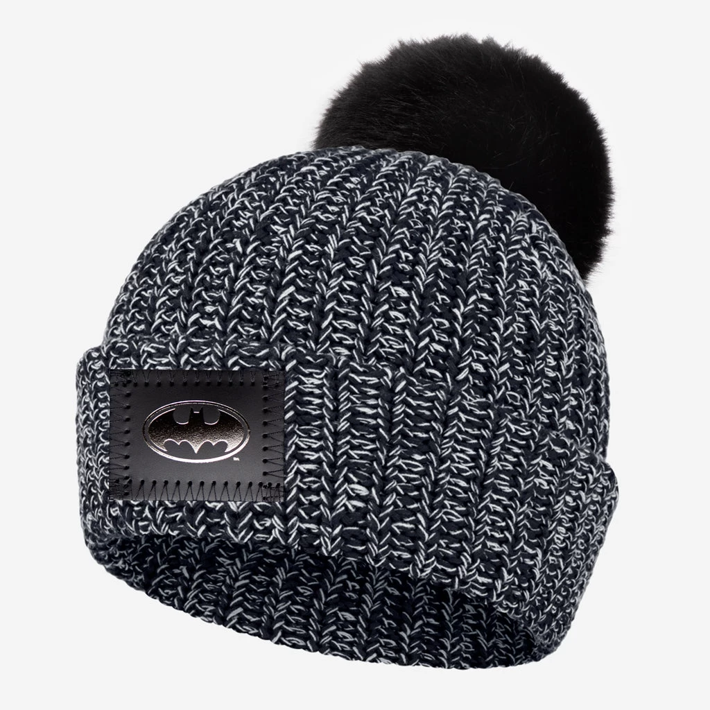 From saving Gotham to teaming up with the Justice League to protect the planet, this speckled pom beanie celebrates Batman’s endless crusade to do good. This black and white speckled cuffed beanie features a black leather patch debossed with the Batman™ shield symbol on the front in metallic foil and has a detachable black faux fur pom. These beanies are the coziest in the universe and perfect for any adventure!