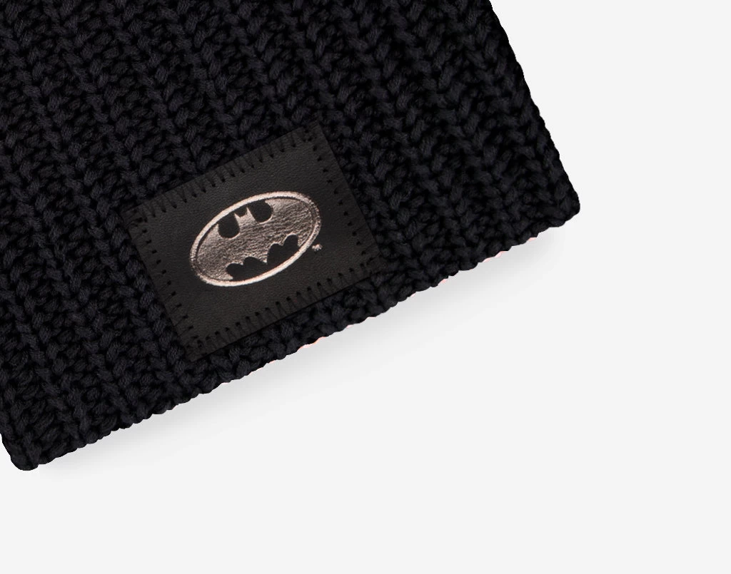 From saving Gotham to teaming up with the Justice League to protect the planet, this kids beanie celebrates Batman’s endless crusade to do good. This black beanie features a black leather patch debossed with the Batman™ shield symbol on the front in metallic foil. These beanies are the coziest in the universe and perfect for any adventure!