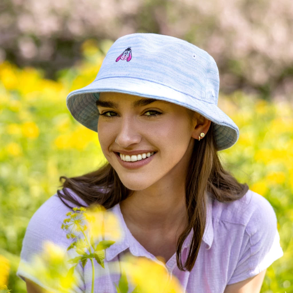 Show off your favorite Winnie the Pooh character, front and center! This Blue Speckled Hero Bucket Hat is made with FitKnit™ technology that forms to fit and features artwork of Disney’s Eeyore, embroidered in full color.