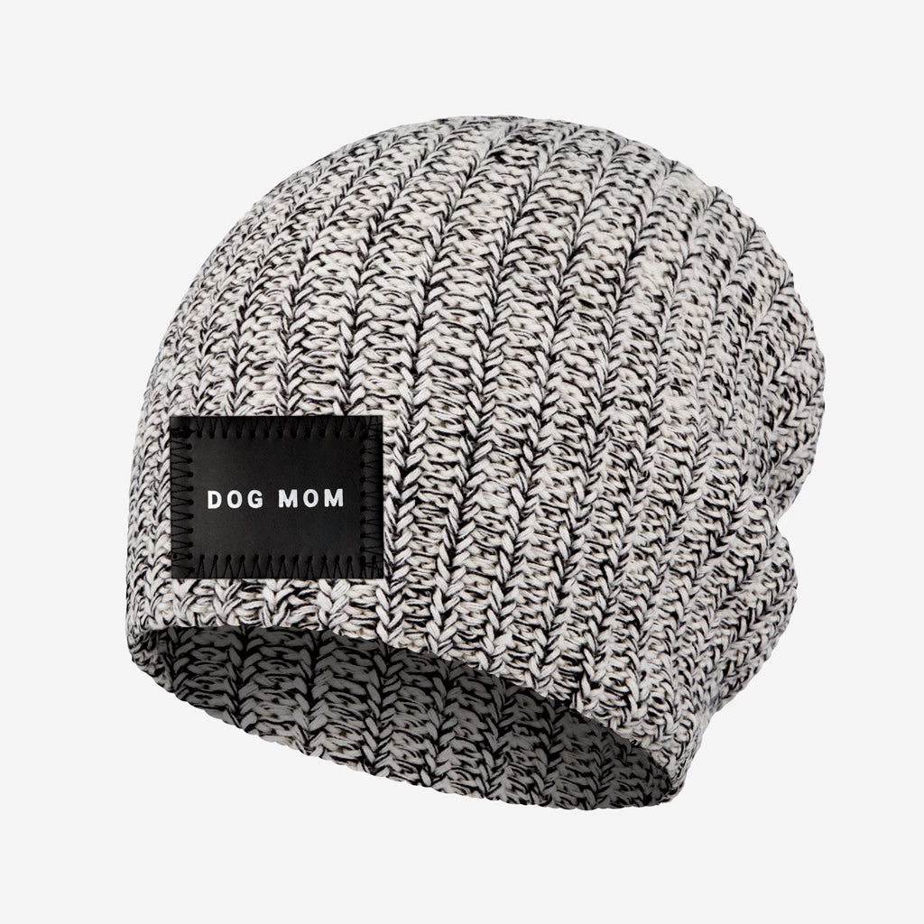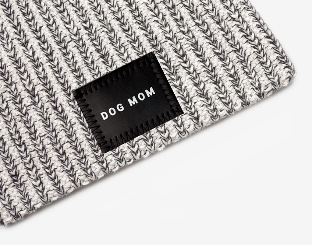 Show your pet some love! This Black Speckled Beanie features a black leather patch with ‘DOG MOM’ debossed in white foil. Made from our coziest knit, this beanie is perfect for cool-weather walks with your canine best friend.