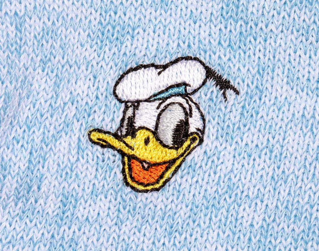 The headband that makes you a hero, now featuring Donald Duck! Made with flexible FitKnitâ„¢ technology, The Hero Headband contours to your head for a fit you need to feel to believe. This blue and white speckled style features a Donald Duck face embroidered in full color.