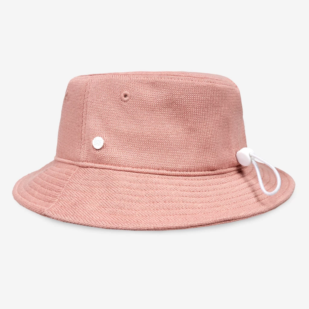 Meet the hat that makes you a hero! Made with ultra-soft, flexible FitKnitâ„¢ technology, The Hero Bucket Hat contours to your head for a fit you need to feel to believe. The Dusty Pink Hero Bucket Hat features the Love Your Melon logo on a pink silicone patch and a white rivet.Â
