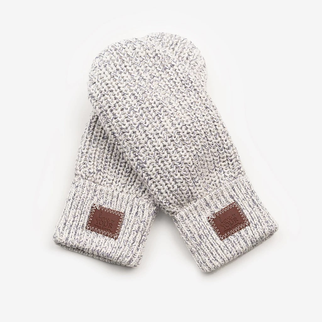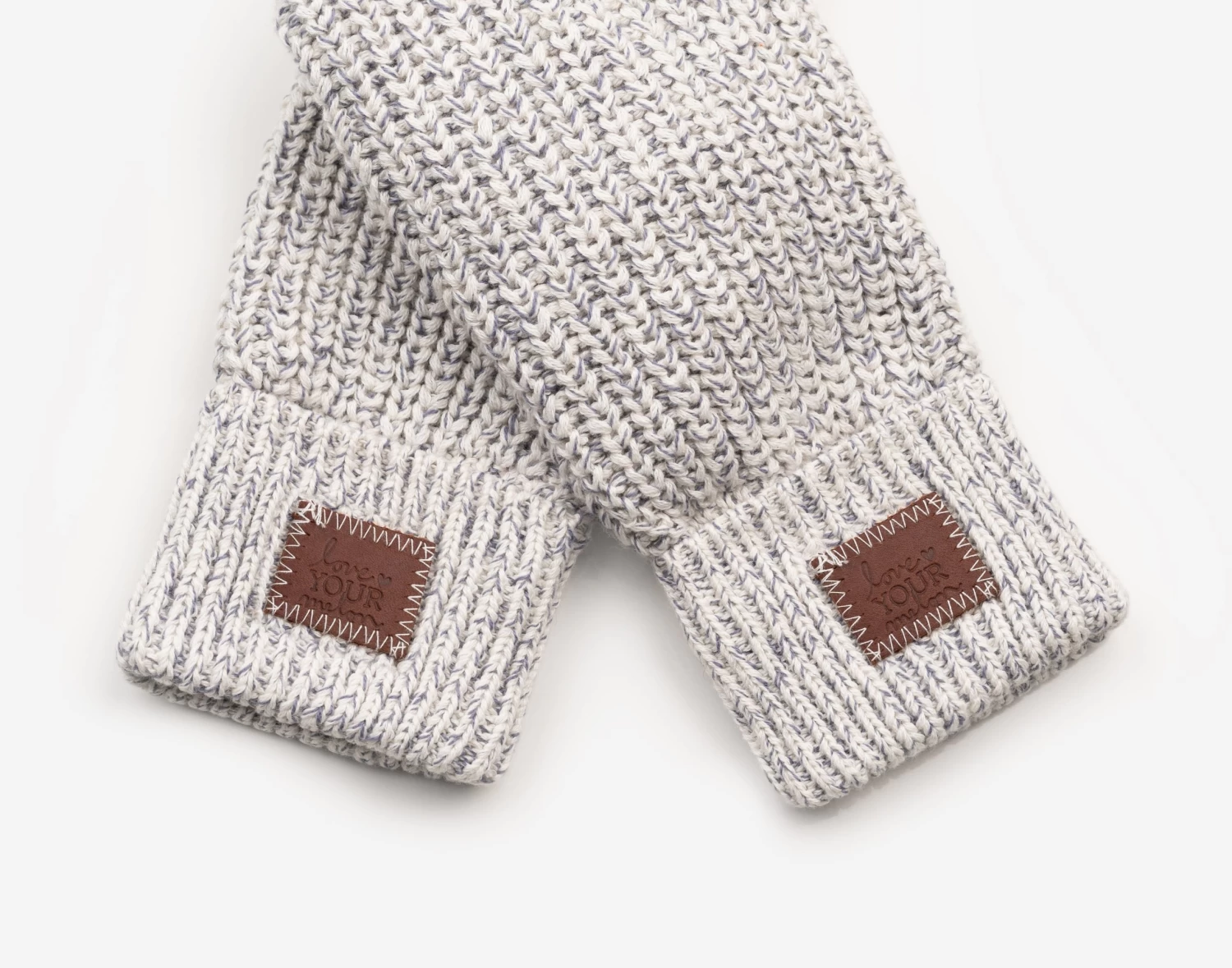Prepare to be cozy! These knit speckled mittens in classic gray are lined with soft fleece for extra warmth. A classic red maple leather patch debossed with the Love Your Melon logo is featured on each of the elasticated cuffs.