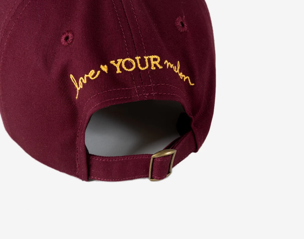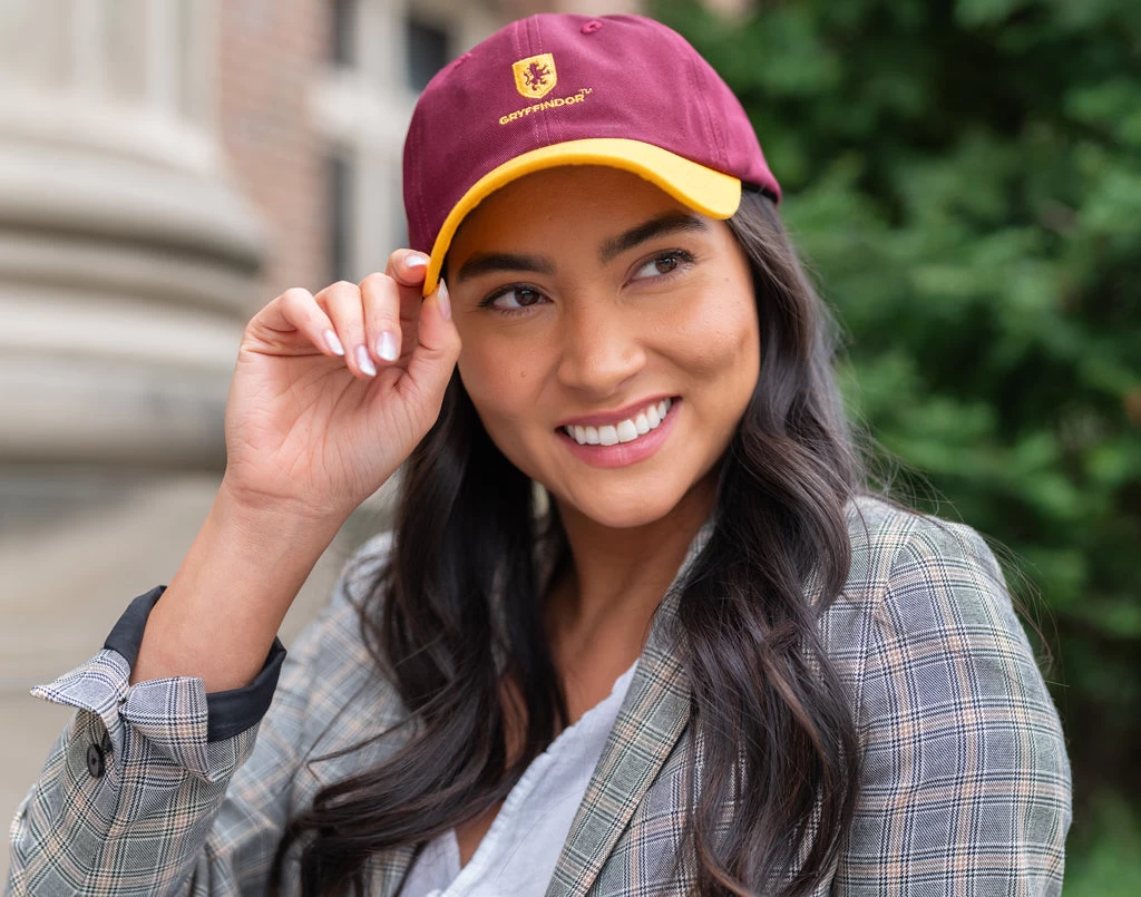 Show off your house pride and add a magical touch to your summer look with this awesome two-toned cap for all wizards and witches! This burgundy and yellow colorblock cap features the Harry Potter™ Gryffindor™ house crest icon embroidered on the center front and the Love Your Melon logo embroidered across back arch in gold. This cap is unstructured and features an adjustable strap and buckle.