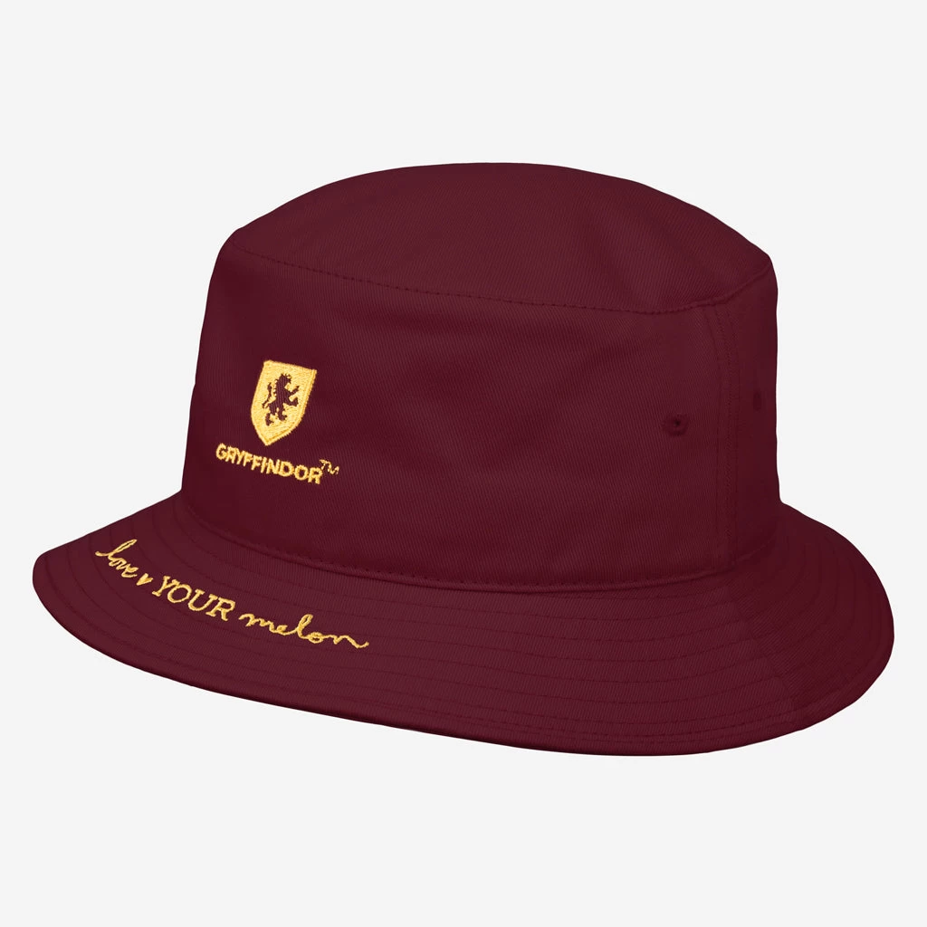 Show off your house pride and add a magical touch to your summer look with the perfect bucket hat fit for all wizards and witches! This burgundy bucket hat features the Harry Potter™ Gryffindor™ house crest icon embroidered on the center front and the Love Your Melon logo embroidered across the front brim in gold. This bucket hat is lightweight, breathable, and the best accessory for any summer adventure.