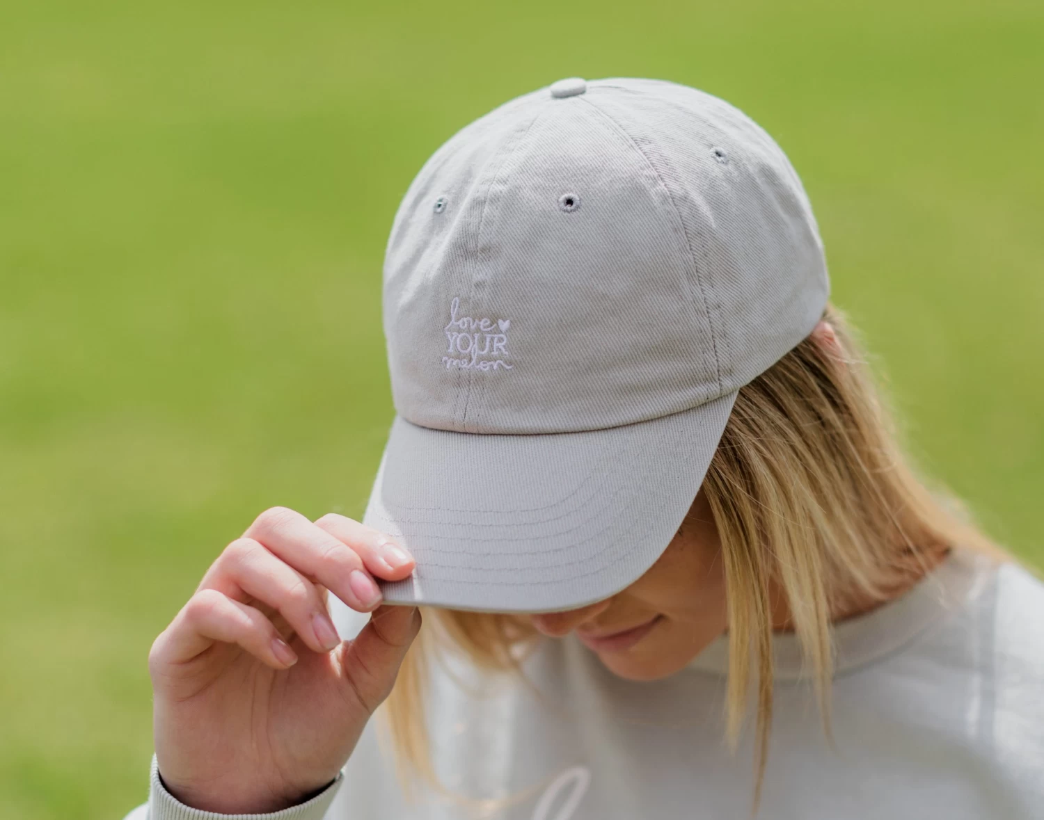 This high rise washed denim cap features the Love Your Melon logo embroidered on the front in white and an adjustable strap at the back. This cap is unstructured.