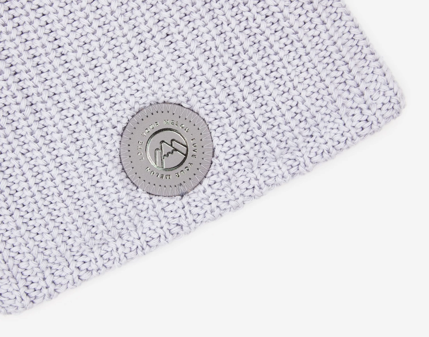 This high rise gray fleece lined beanie features a circular monochrome leather patch debossed with a metallic Love Your Melon mountain logo on the front. These beanies are very cozy and warm and have a slouchier fit.