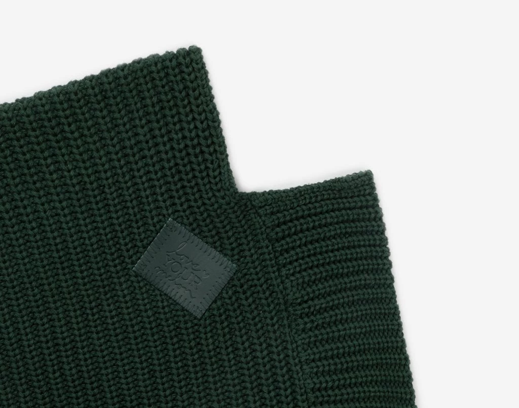 This shawl is knit in 100% cotton yarn in a hunter color and features a hunter leather patch debossed with the Love Your Melon logo on the back. One size. Machine washable.