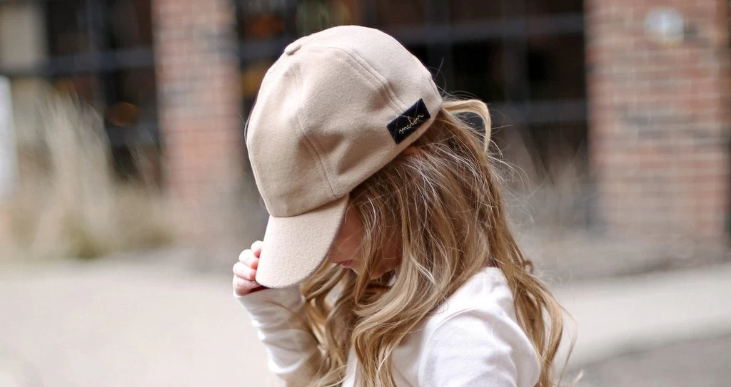 This child camel cap is made out of 100% cashmere and features a rectangular black gold foil melon leather patch on the back left of the cap. Has an adjustable strap. Made in the USA.