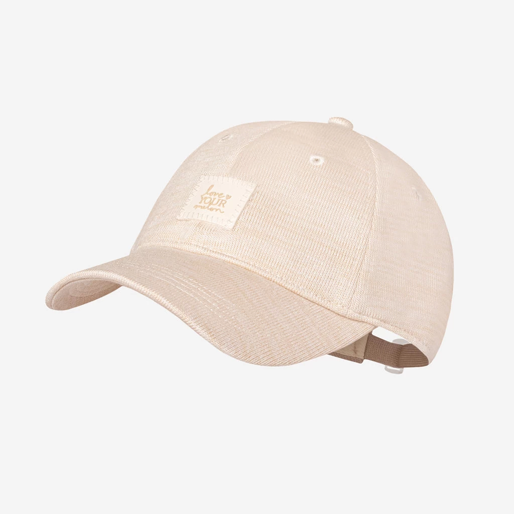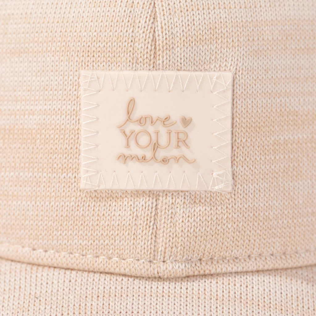 This cap features a natural silicone patch embossed with the Love Your Melon logo in light brown on the front, and a white branded rivet on the back of the cap.
