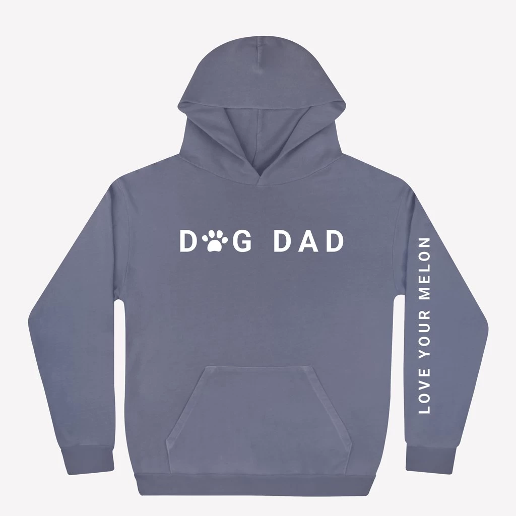 This hoodie is made from heavyweight pigment-dyed French Terry cotton and silicone washed for a super soft, relaxed fit. This hoodie features a Love Your Melon branded rubber tag on the back upper neck for easy hanging, Dog Dad screened in white on the front and the Love Your Melon logo up the arm.