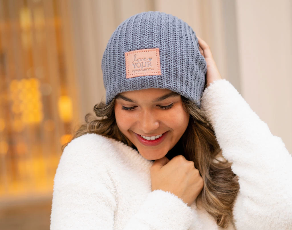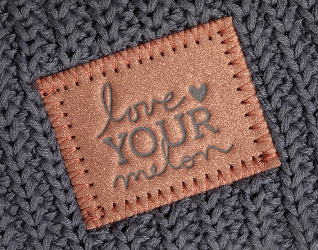 Style up your winter outfit with this cozy light charcoal glitter patch beanie! This beanie features a shiny pink glittery patch with the Love Your Melon logo in gray.
