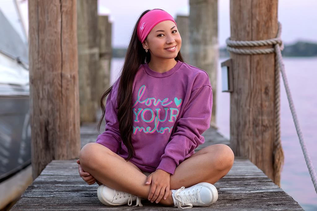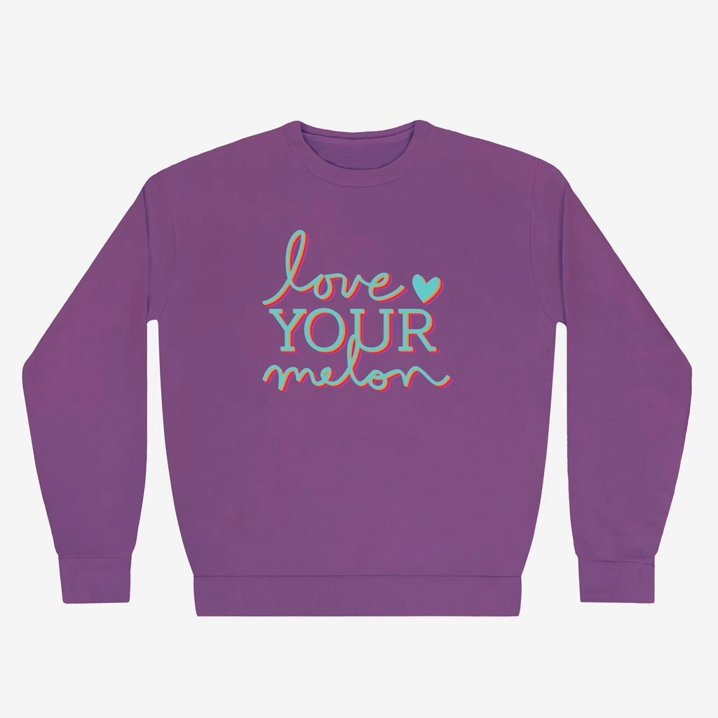 This crew sweatshirt is made from heavyweight pigment-dyed French Terry cotton and silicone washed for a super soft, relaxed fit. This hoodie features the dual color Love Your Melon stack logo printed on the front.