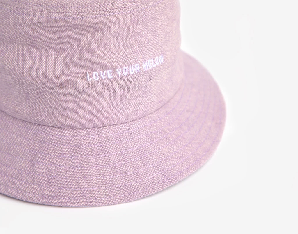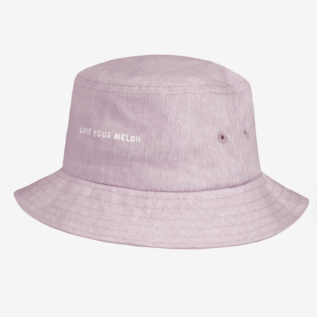 Beat the heat, coastal style! This lightweight, breathable, 100% linen bucket hat in pastel purple is your pack-and-go summer staple. The Lilac Linen Bucket Hat features the Love Your Melon block logo embroidered on the center front in white.