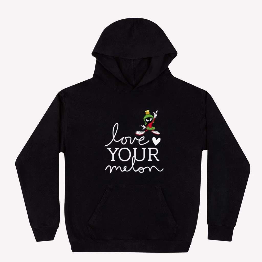 This hoodie is made from heavyweight reactive-dyed French Terry cotton and silicone washed for a super soft, relaxed fit. This hoodie features the Love Your Melon stacked logo with Marvin the Martian as well as a back silicone rubber logo tag for easy hanging