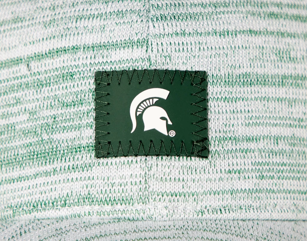 Go Spartans! This White and Pine Green Speckled Hero Cap features a Michigan State silicone patch at the front, and a Love Your Melon branded rivet on the back. Made with FitKnitâ„¢ technology, it is the perfect cap for all seasons.