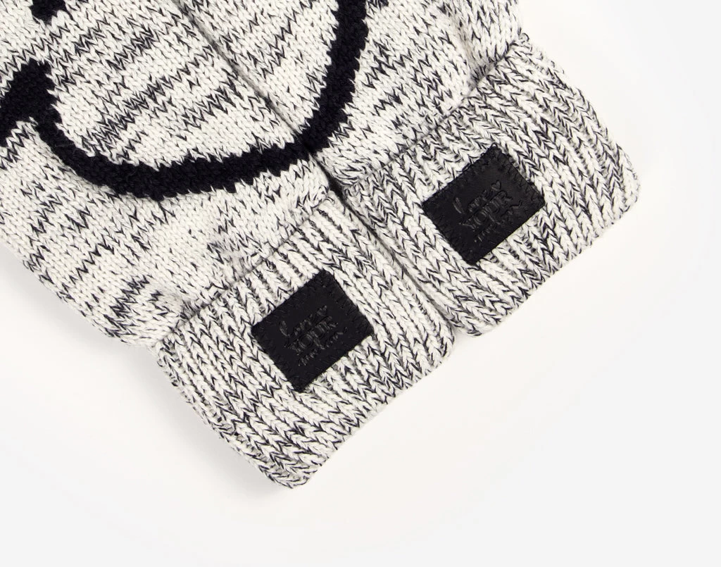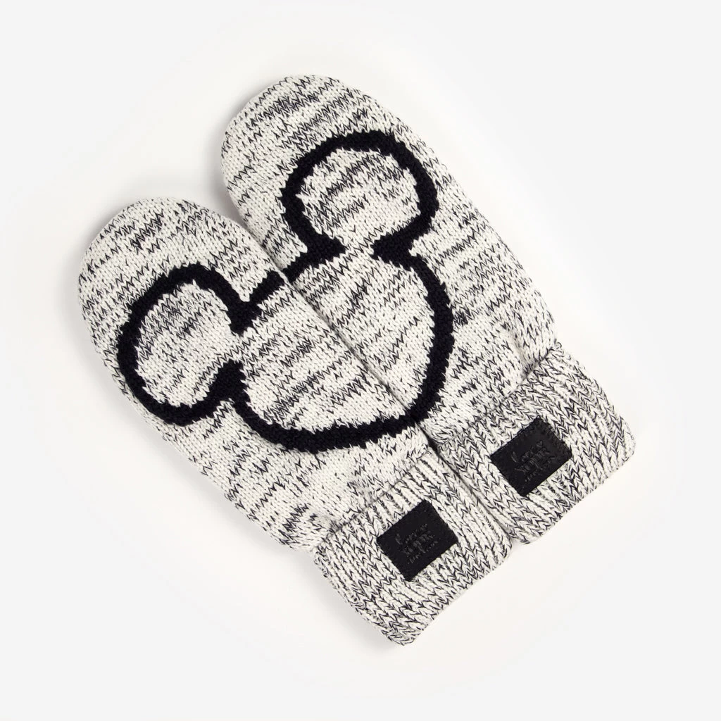 Warm up in the happiest mittens on earth! These Black Speckled Mittens feature a split knit-in Mickey Mouse outline in black, and a Love Your Melon branded black leather patch on each elasticated cuff. These Mickey Mouse mittens have a cozy knit outer, and are lined with a soft polyester fleece for extra warmth.