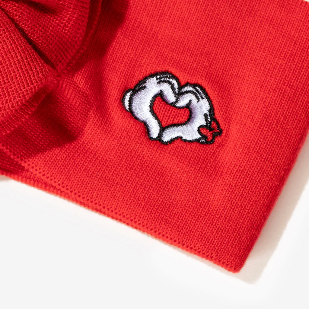 This Red Bow Hero Headband features Disney Mickey Mouse and Minnie Mouse™ hands joining together to form a heart shape. A Love Your Melon branded rivet is featured on the back of the Minnie Mouse headband.