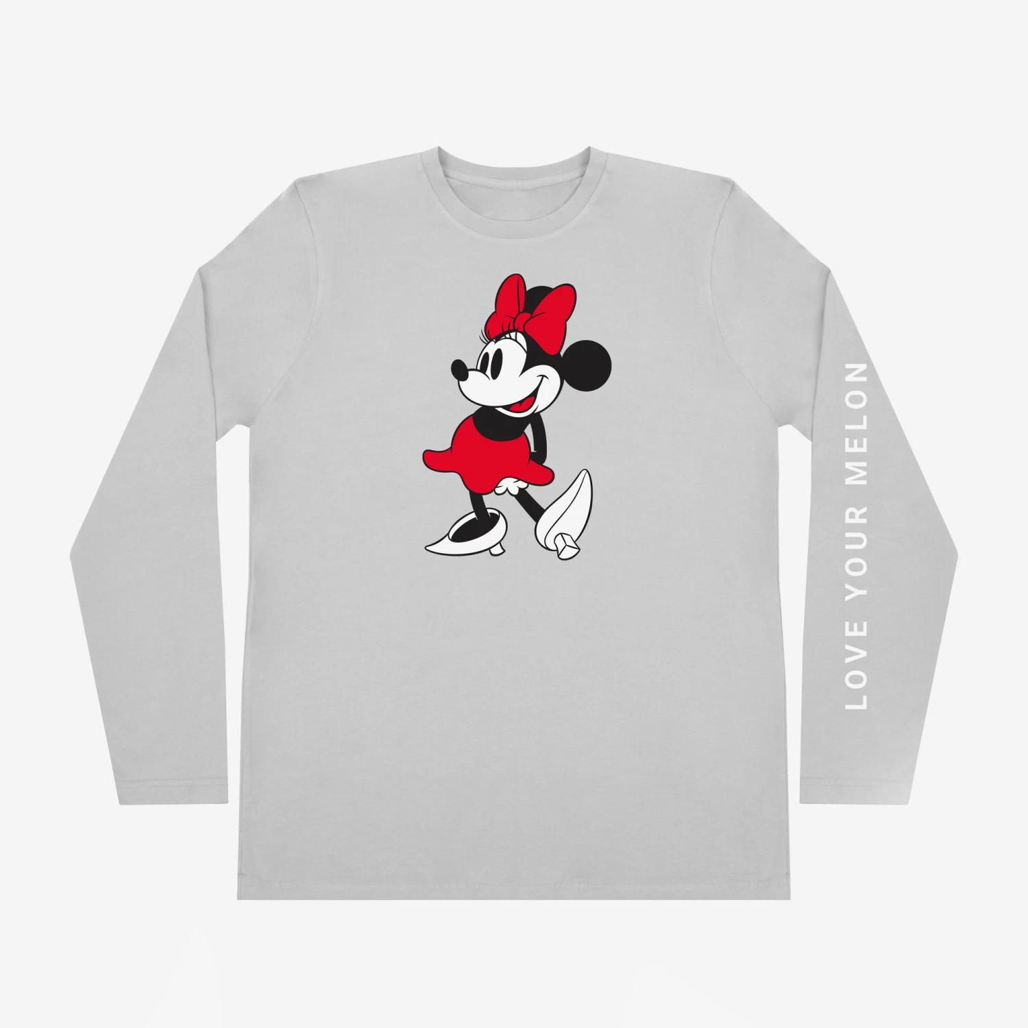 Calling all Mouseketeers! This crew neck long sleeve shirt is made from 100% cotton and silicone washed for a super soft, relaxed fit. This long sleeve shirt features Minnie Mouse screenprinted on the front and the Love Your Melon logo up the side of the sleeve.