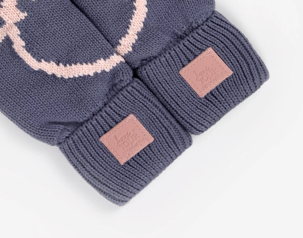 Warm up in the happiest mittens on earth! These Light Charcoal and Blush Mittens feature a split knit-in Minnie Mouse outline in blush, and a Love Your Melon branded blush leather patch on each elasticated cuff. These mittens have a cozy knit outer, and are lined with a soft polyester fleece for extra warmth.