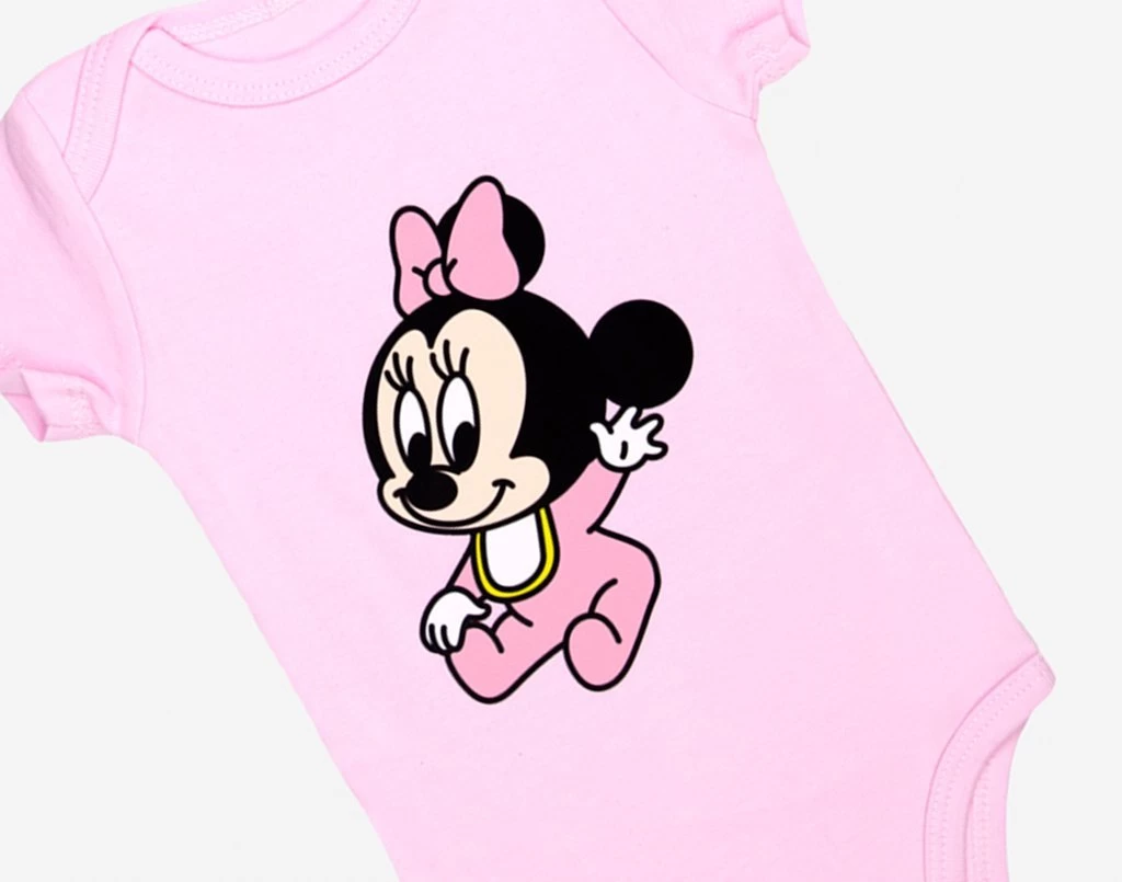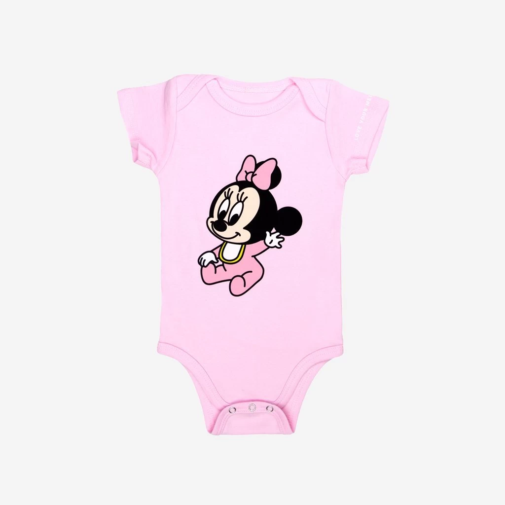 Calling all Mouseketeers! This super soft light pink short sleeve baby onesie features a 3 snap closure, as well as an adorable Minnie Mouse on the front, and the Love Your Melon logo on the sleeve.