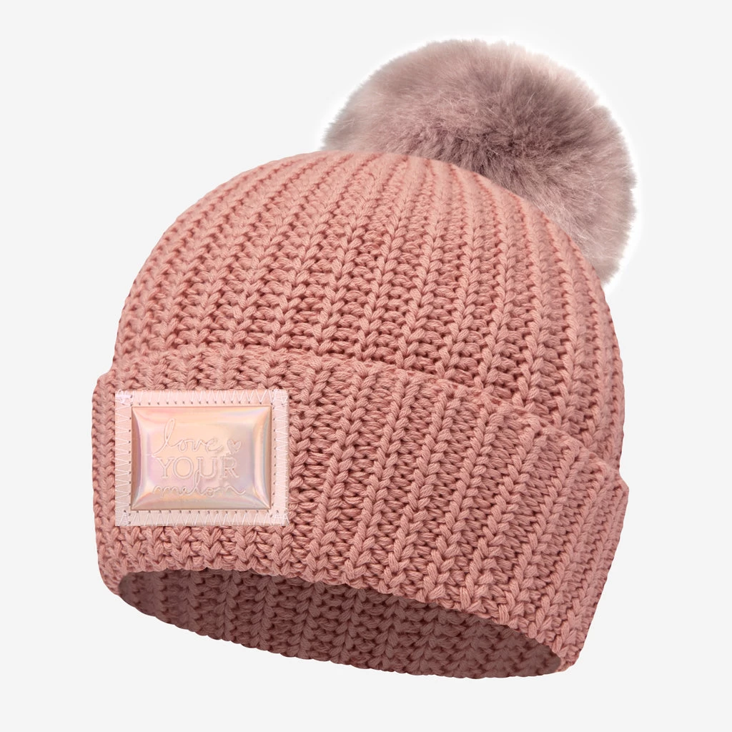 This ultra-light, but ultra-thick ‘cloud’ beanie designed for all-day wear is the perfect new addition to your wardrobe. Stay extremely warm this season with this Misty Rose Cloud Pom Beanie, which features a black iridescent puff patch and a detachable black faux fur pom.