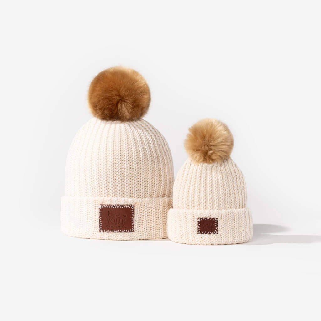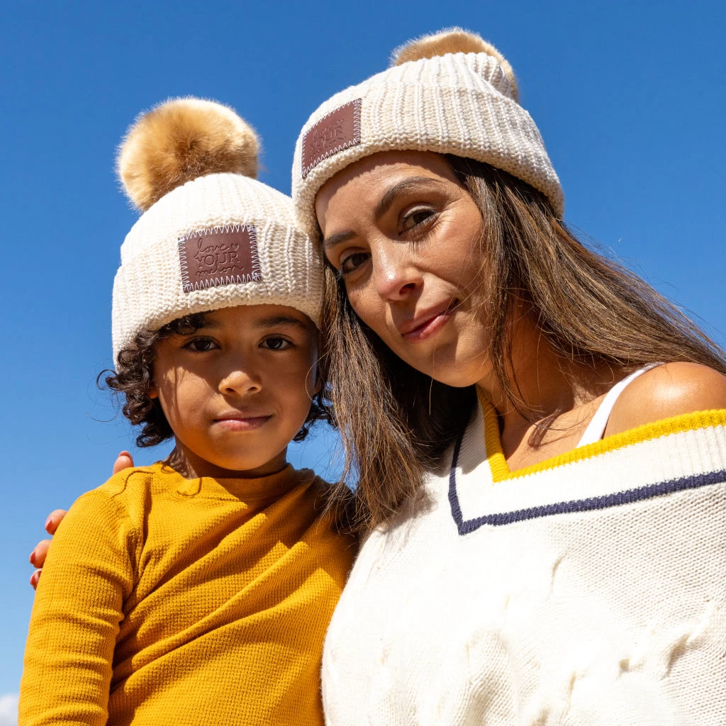 The Women’s and Kids Pom Beanies are made with our ultra-cozy LoveKnit™ and features a classic maple patch embossed with the Love Your Melon logo.