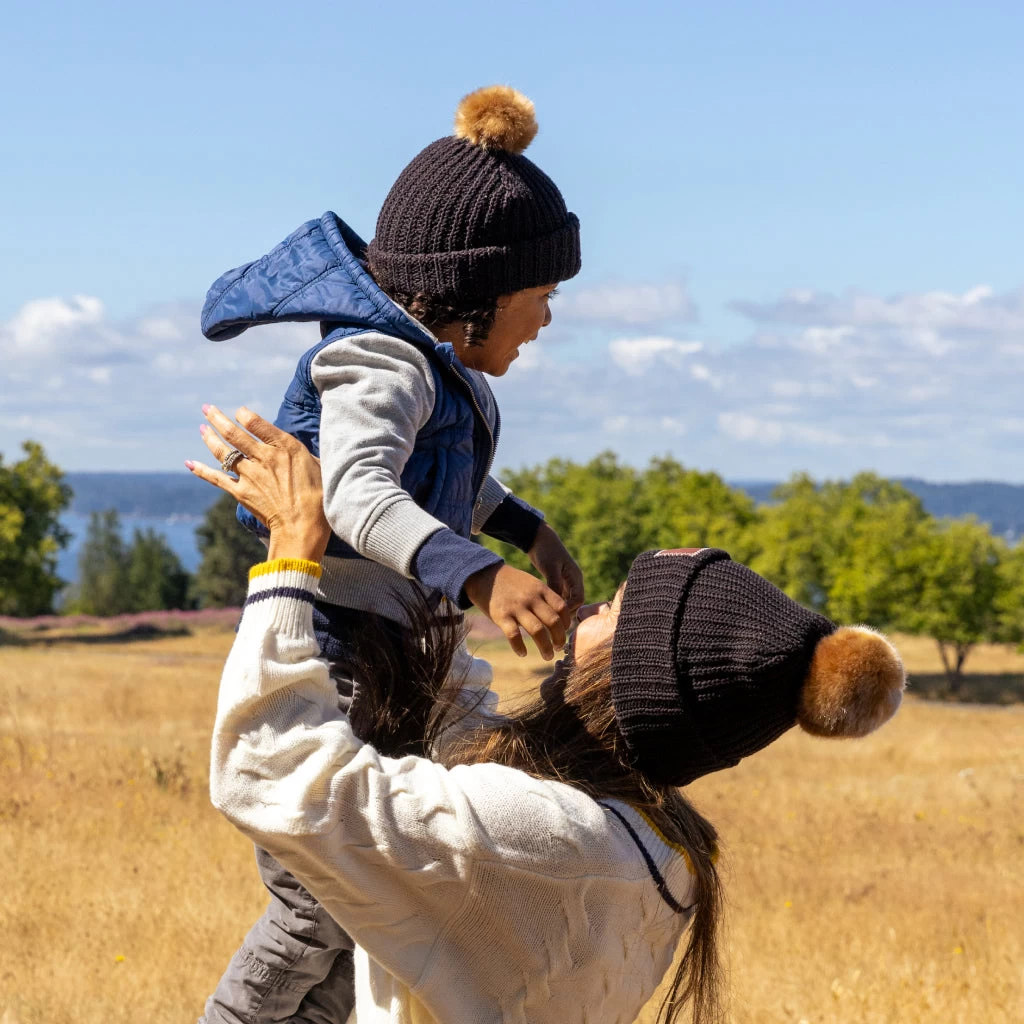The Women’s and Toddler Pom Beanies are made with our ultra-cozy LoveKnit™ and features a classic maple patch embossed with the Love Your Melon logo.