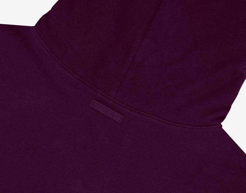 This mulberry monochrome hoodie features a monochrome Love Your Melon logo on the front and a color matched silicone tag on the back. This hoodie is made from heavyweight pigment-dyed French Terry cotton and silicone washed for a super soft, relaxed fit.