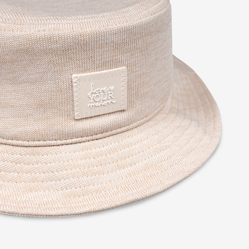 Meet the hat that makes you a hero! Made with ultra-soft, flexible FitKnitâ„¢ technology, The Hero Bucket Hat contours to your head for a fit you need to feel to believe. This Natural and Mocha Speckled Hero Bucket Hat features the Love Your Melon logo on a natural silicone patch and a white rivet.Â