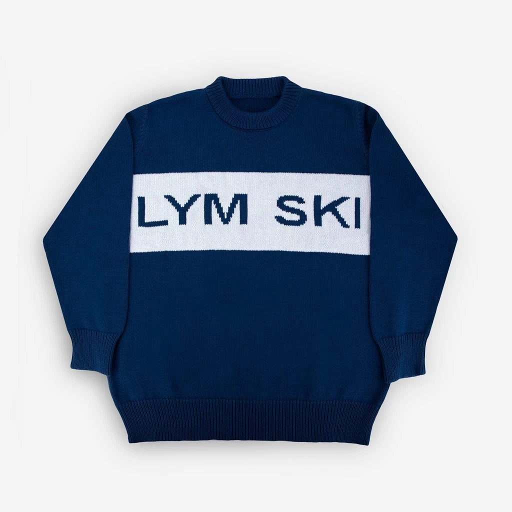This navy and high rise gray sweater is the perfect apparel piece for a day on the slopes or hanging around the chalet! This cozy knit sweater features a crew neck style with a knit-in LYM SKI logo across the chest. This sweater is unisex, perfect for all the winter sports fanatics in your life!