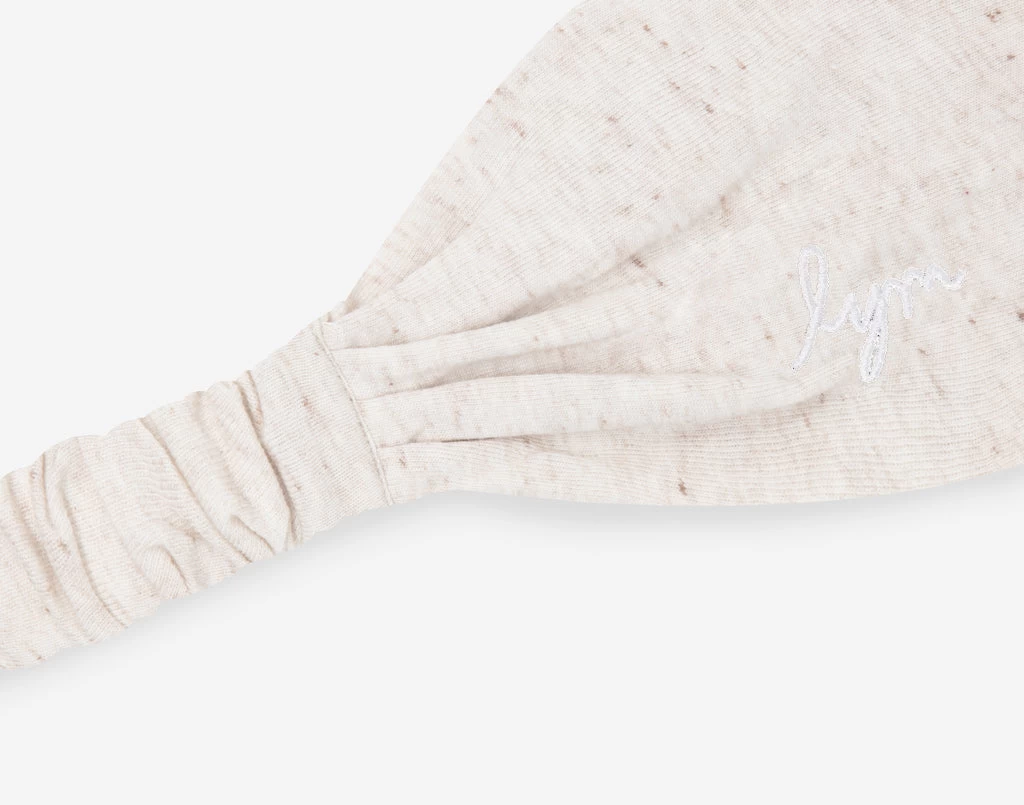 This oatmeal tri-blend scrunch headband is perfect for a casual day or your hardest workout! This athletic style headband features a flat front with the Love Your Melon cursive logo embroidery in white and an encased elasticated back to fit most heads.