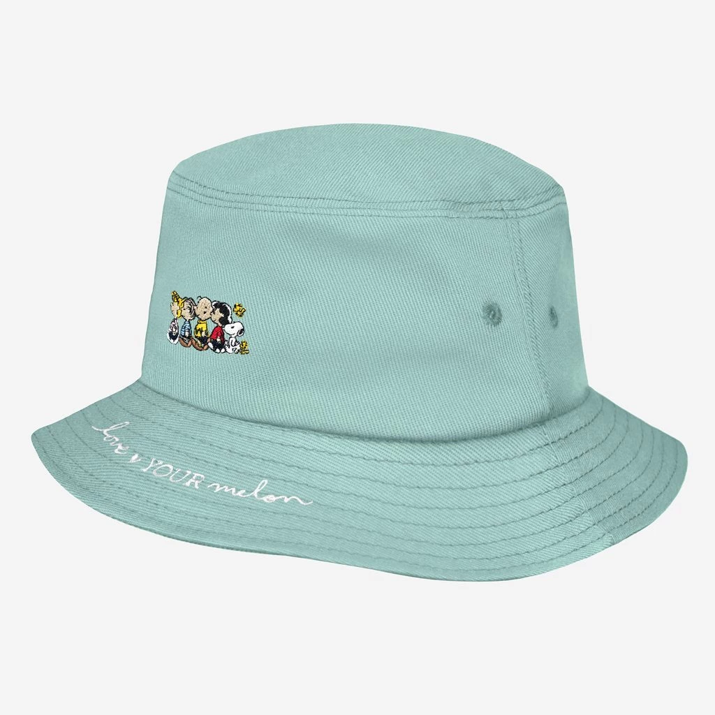 Our latest collaboration invites you to take a trip down memory lane with the much-loved Peanuts comic strip. This bucket hat celebrates the Peanuts Crew embroidered on the front and the Love Your Melon cursive logo along the front brim.