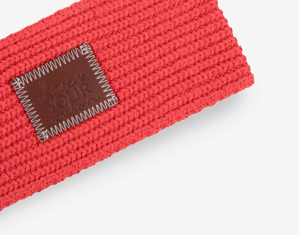 This stylish red knit headband features a red maple leather patch debossed with the Love Your Melon logo on the front of the headband. This knit headband is cozy and perfect for the colder seasons!