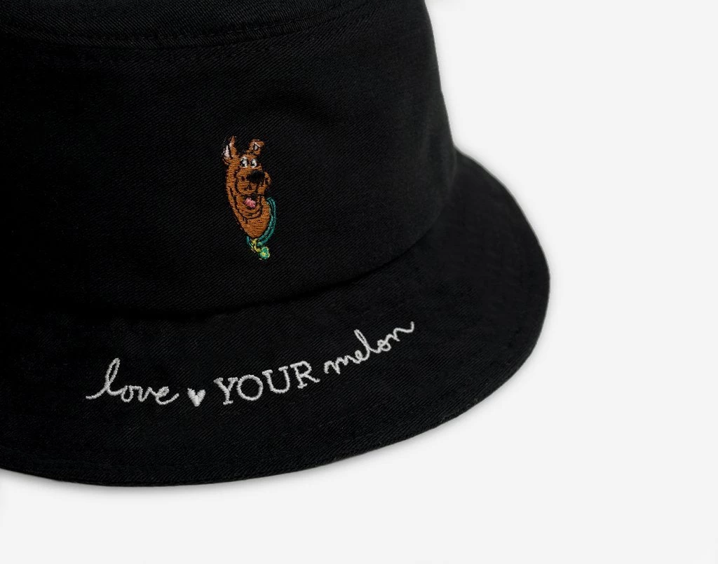 Scooby-Dooby-Doo, where are you? He is on a bucket hat! This bucket hat features everyones favorite mystery solving dog, Scooby-Doo, embroidered on the front, and the Love Your Melon cursive logo along the front brim. This bucket hat is the perfect accessory for solving any mystery.