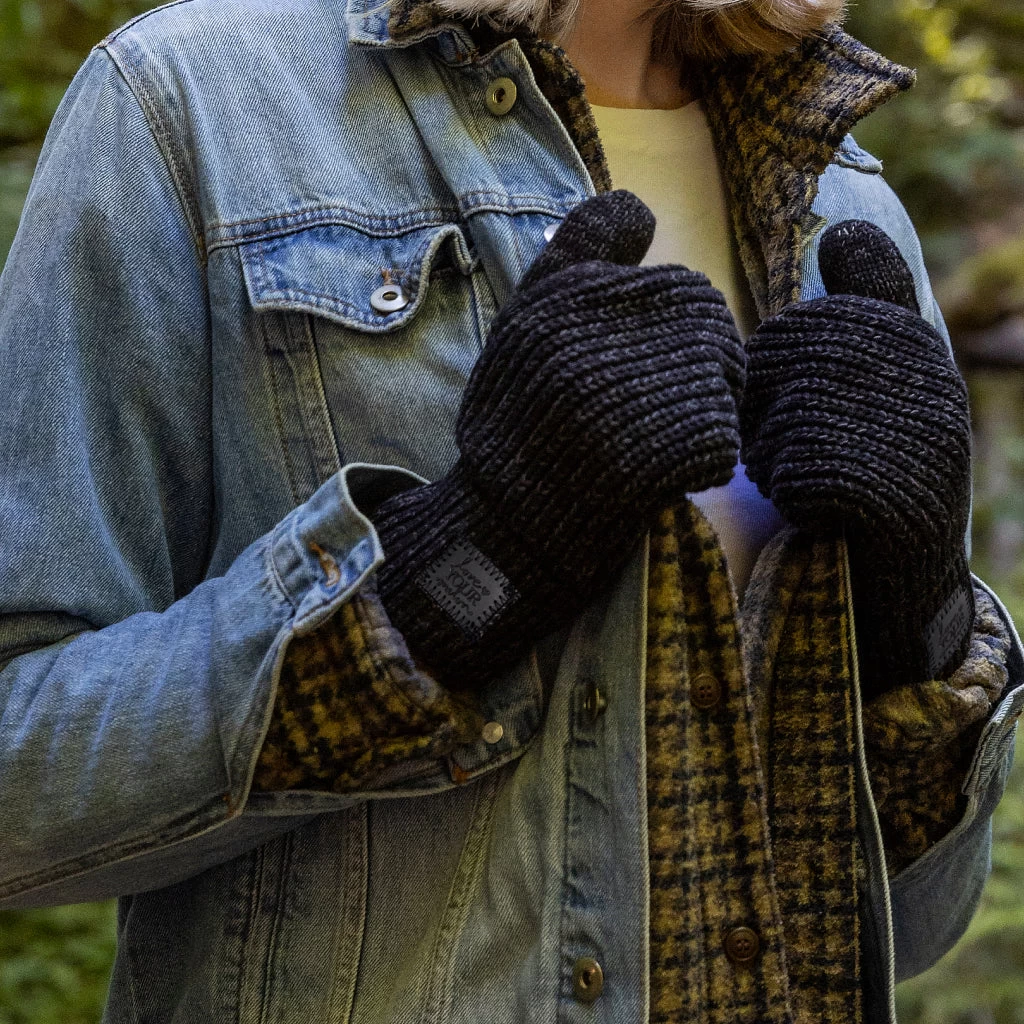 Keep your hands cozy in the Smoke Speckled Mittens. This on-trend accessory features a smoke speckled leather patch embossed with the LYM logo on each elasticated cuff. Made with LoveKnit™ – a double-thick, extra soft knit for unmatched comfort.