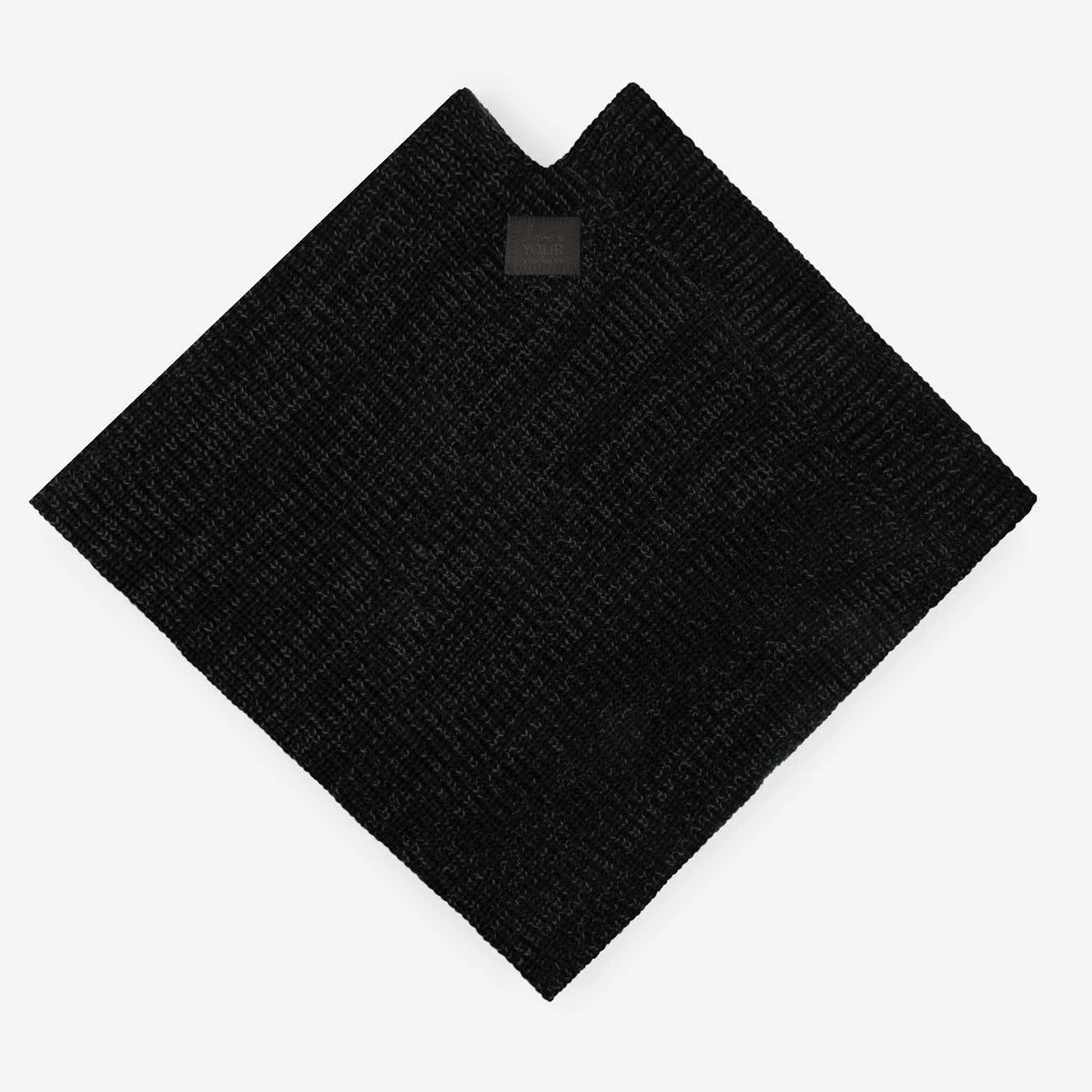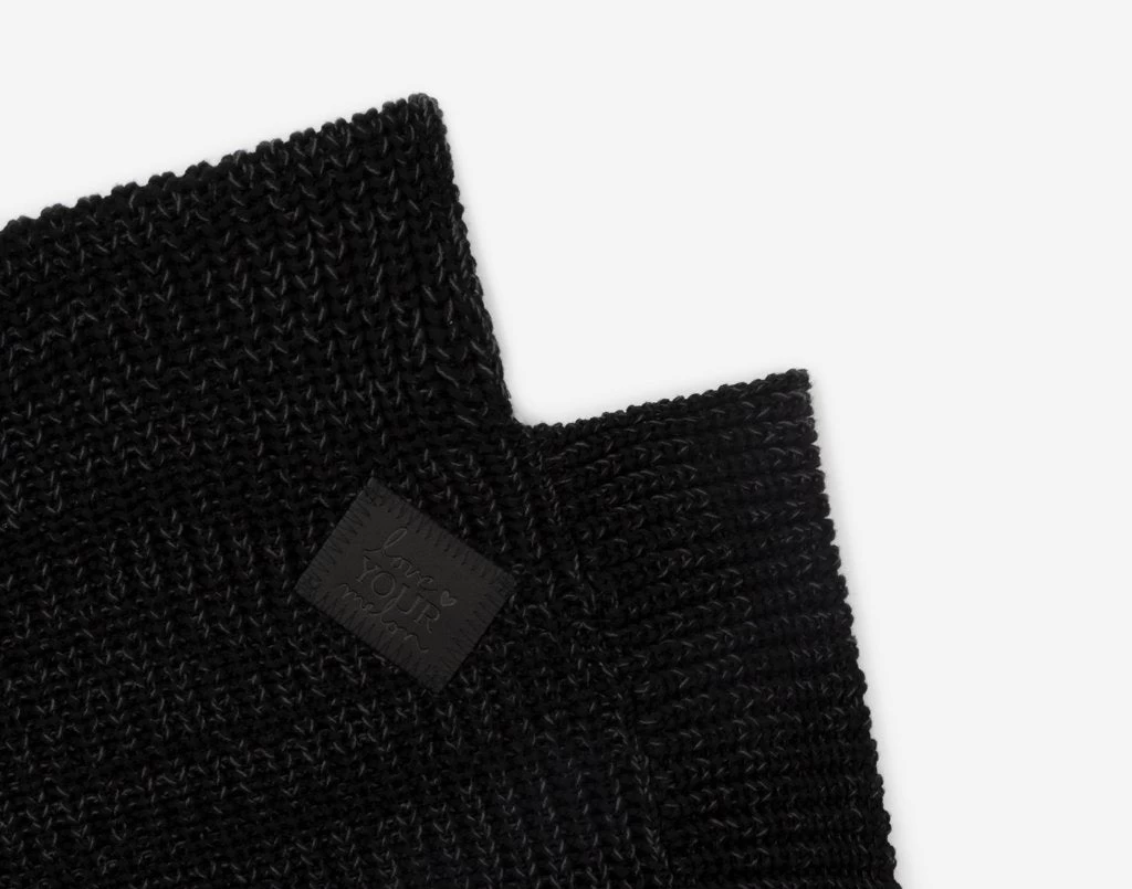 This shawl is knit in 100% cotton yarn in black and dark charcoal colors and features a black leather patch debossed with the Love Your Melon logo on the back. One size. Machine washable.